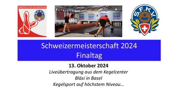 Am 13.10.2024 findet der Finaltag der SM im Kegelcenter Bläsi, Basel statt. Unsere Kegler starten um 10:52 (Rolf Purtschert), 12:23 (Remo Amstein) und 16:56 (Oskar...