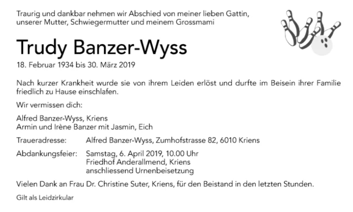 Mit Trauer nehmen wir Abschied von unseren geliebten Mitgliedern.